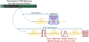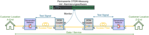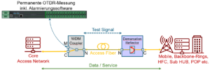 Das In-Service Monitoring funktioniert mit dem WDM-Koppler parallel mit allen gängigen B2B-, Breitband-, HFC- und xWDM-Services, ohne diese zu beeinträchtigen. Zum Schutz der Gegenstelle und besonders aber zur Erhöhung der Messgenauigkeit, wird ein Demarkation Reflektor empfohlen. Pro zu montierende Faser wird ein WDM-Koppler und ein Reflektor benötigt.